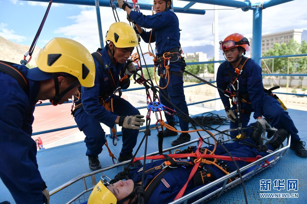 6月15日,參訓(xùn)學(xué)員進(jìn)行鐵塔救援系統(tǒng)實(shí)際操作展示。新華社記者 孫瑞博 攝