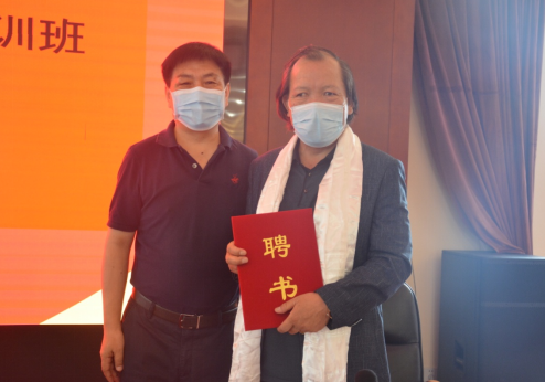 北京藏醫(yī)院院長仲格嘉(左)向明珠(右)頒發(fā)聘書,聘請明珠為北京藏醫(yī)院藏藥浴專題培訓班授課老師。