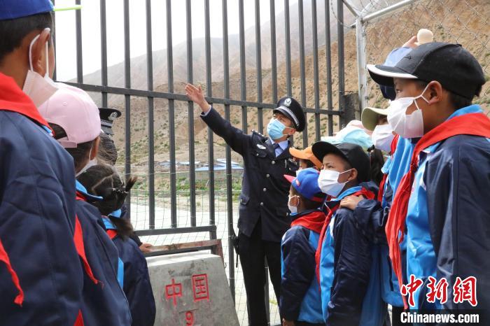 “同學們,現在你們看到的就是屹立在中尼邊境的9、10號界樁,界樁代表著國家的形象,我們要像愛護自己的眼睛一樣愛護、守護它?!逼仗m出入境邊防檢查站民警格桑倫珠正在為學生們講述中尼邊境界碑的故事。