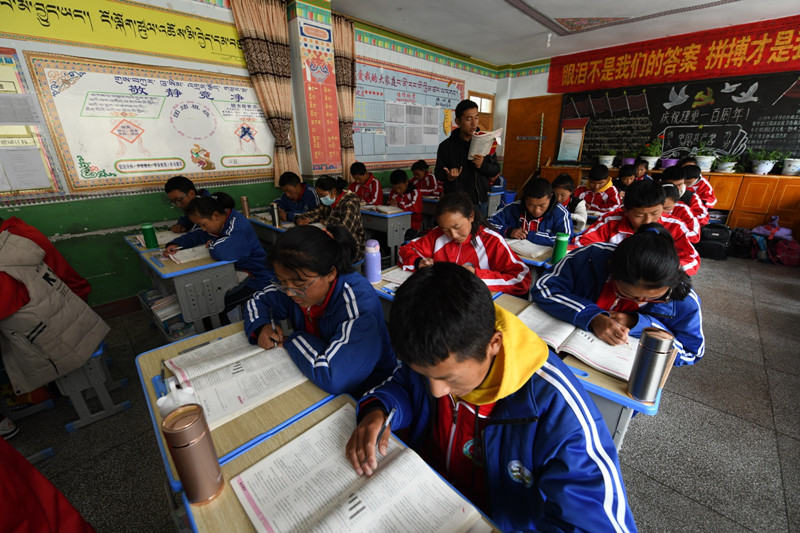 圖為西藏自治區(qū)山南市洛扎縣中學(xué)正在上課的孩子們。唐斌 攝
