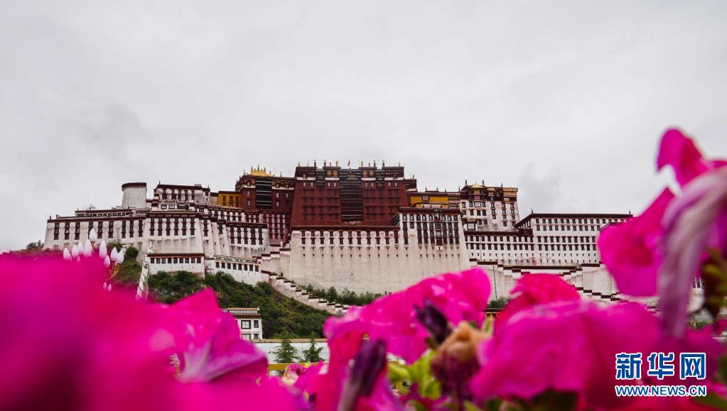 這是鮮花掩映下的布達(dá)拉宮(2018年7月22日攝)。新華社記者 晉美多吉 攝