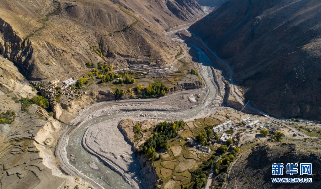 俯瞰西藏阿里地區(qū)札達(dá)縣楚魯松杰鄉(xiāng)楚松村楚魯組,蜿蜒的如許藏布江穿過村落(2018年9月16日攝,無人機(jī)照片)。新華社記者 旦增尼瑪曲珠 攝