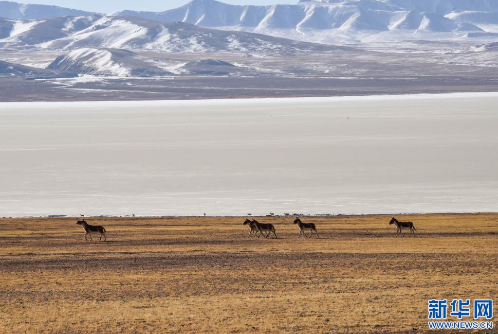 藏野驢在西藏那曲市羌塘國家級自然保護(hù)區(qū)內(nèi)奔跑。(新華社記者 田金文 攝)