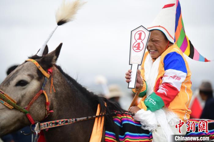 資料圖為小騎手和他的愛馬越過終點線。貢嘎來松 攝