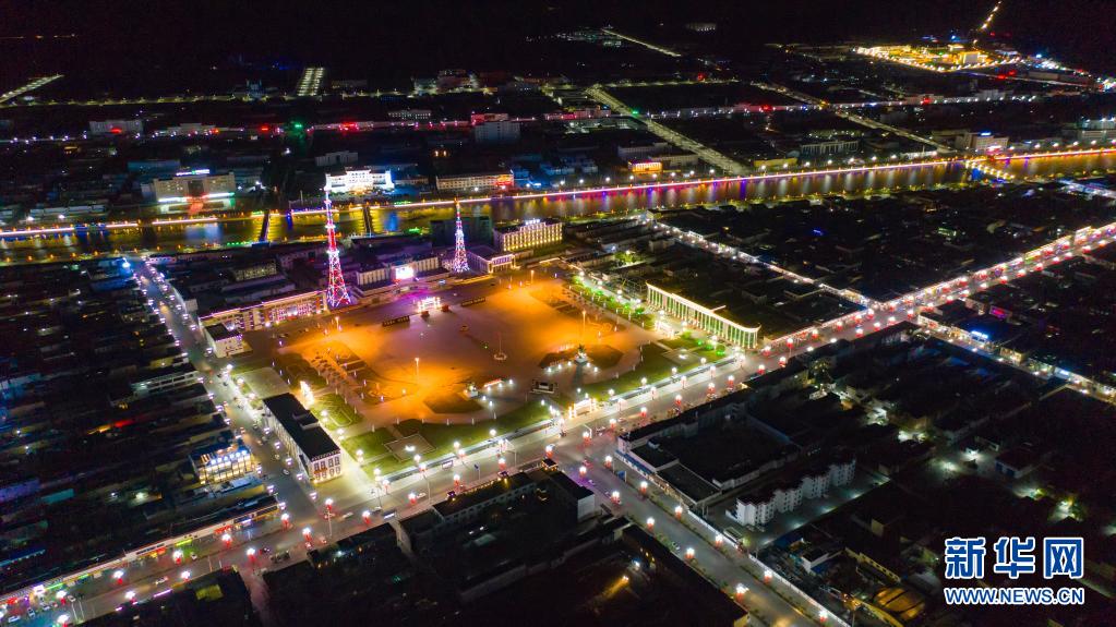 阿里獅泉河鎮(zhèn)夜景(2018年10月3日攝,無人機照片)。新華社發(fā)(貢覺群培攝)