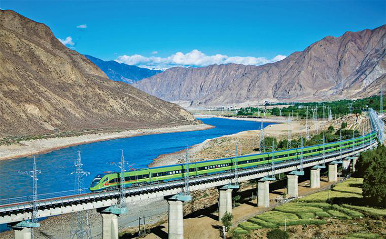 復興號列車飛馳在雪域高原,翻開了西藏和高原鐵路建設發(fā)展新篇章。