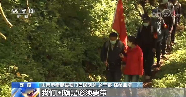 西藏山南市錯那縣勒門巴民族鄉(xiāng)鄉(xiāng)干部 格桑旦增:必須帶的是國旗,在我們的國土上要插上我們的國旗,還有要帶刀子,路不好走,雜草,還有蛇,還有狗熊、野豬都有。