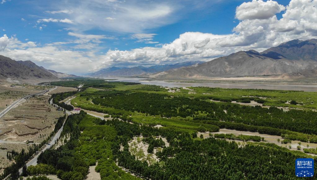 雅魯藏布江山南段防護林(2020年6月27日攝,無人機照片)。新華社記者 晉美多吉 攝