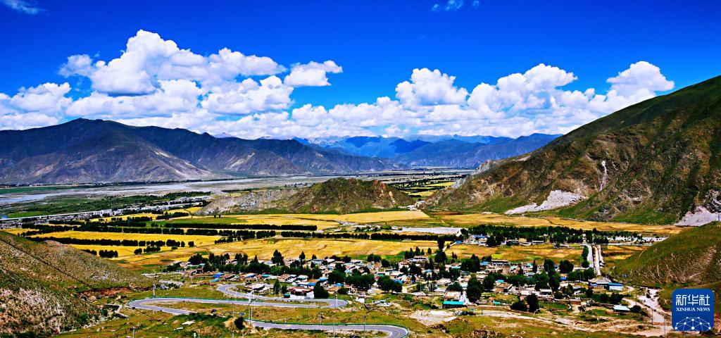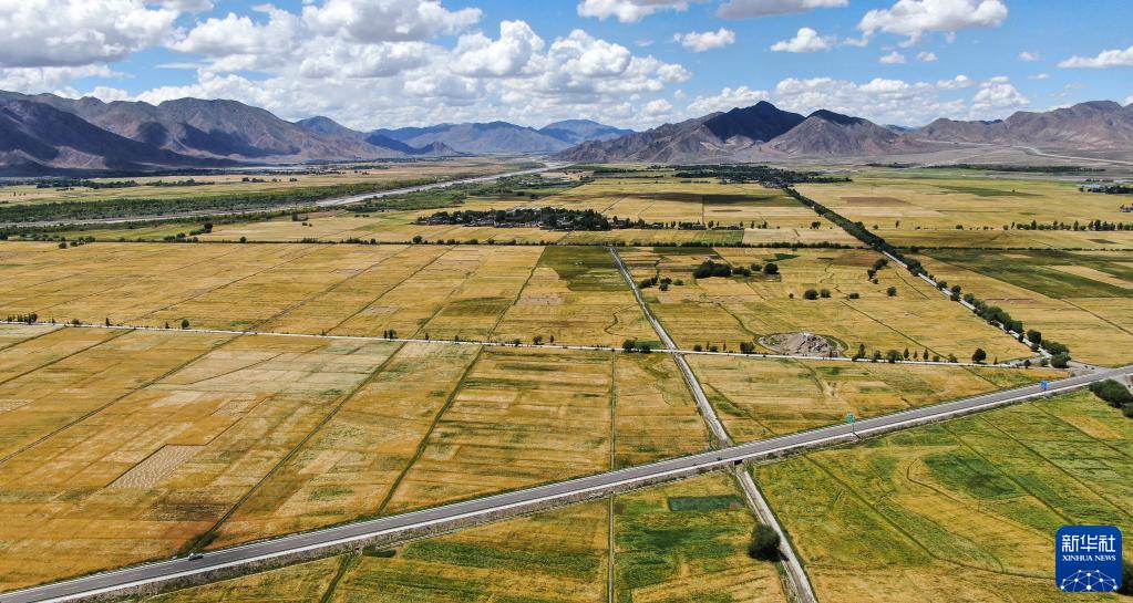 當下,在西藏河谷地帶成片的青稞地里,微風吹麥浪,一片金黃,如同農民心中蕩起的幸福漣漪。