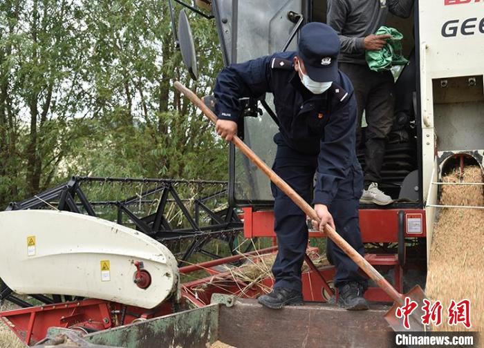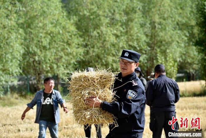 一陣忙碌過后,大家圍攏在田里聊變化說發(fā)展。慶祝西藏和平解放70周年大會剛剛舉行,大家聊著現(xiàn)場觀禮、收聽收看的感受。參加現(xiàn)場大會的民警高揚向大家分享現(xiàn)場感受,講述自己在西藏生活學(xué)習(xí)工作22年的發(fā)展變化和入警初心。歡聲笑語過后,大家又忙碌起來。田間地頭藏青藍的身影,與金黃麥地構(gòu)成一幅加強民族團結(jié)、警民魚水情深的動人畫卷。