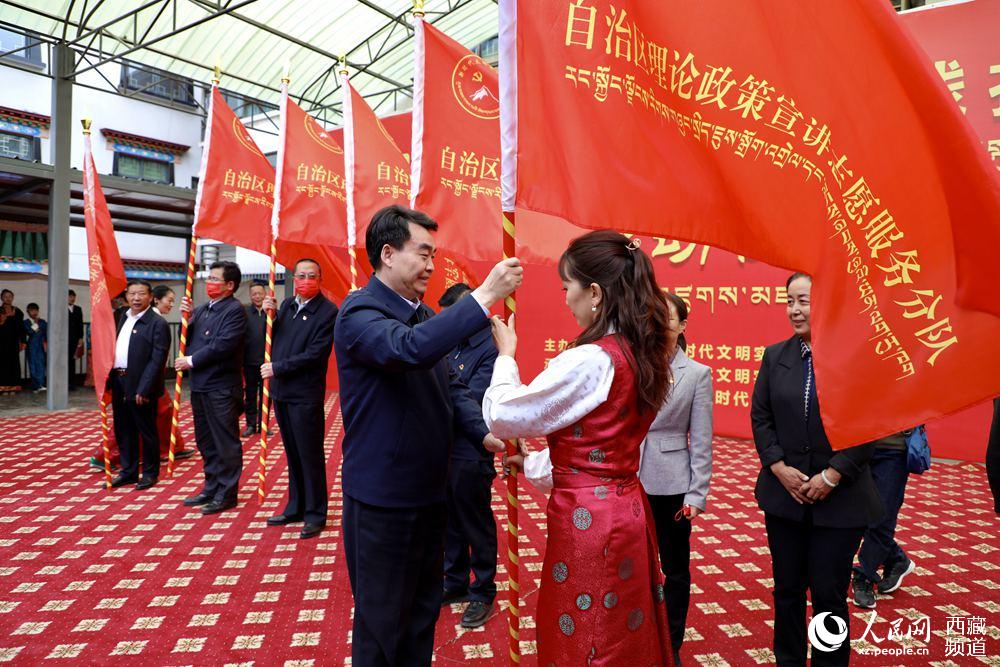 向理論政策宣講志愿服務(wù)分隊(duì)授旗。人民網(wǎng) 次仁羅布攝