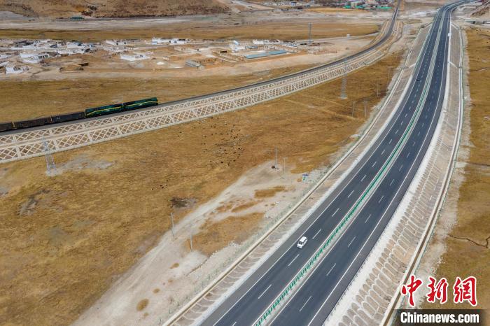 圖為一列進(jìn)藏火車經(jīng)過G6京藏高速西藏羊八井路段?!〗w波 攝