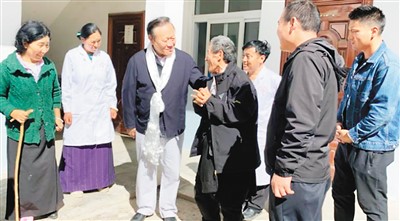 2020年9月,中國(guó)留學(xué)人才發(fā)展基金會(huì)理事長(zhǎng)曹衛(wèi)洲(左三)帶隊(duì)前往洛隆縣,調(diào)研存量大骨節(jié)病患者,并了解已完成手術(shù)患者的恢復(fù)情況。