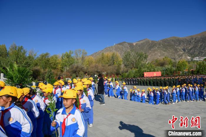 圖為9月30日,在西藏自治區(qū)拉薩市烈士陵園,學生向革命烈士紀念碑獻花。貢嘎來松 攝