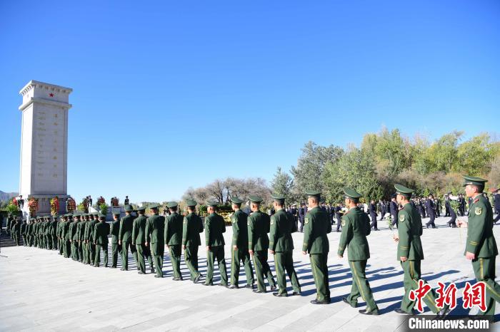 秋日的拉薩碧空如洗,松柏環(huán)繞的拉薩烈士陵園莊嚴肅穆,藍天映襯下烈士紀念碑巍峨聳立。9時30分,西藏自治區(qū)領導和各族各界群眾代表齊聲高唱《中華人民共和國國歌》。隨后,全場肅立,向烈士默哀。