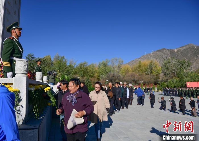 圖為9月30日,在西藏自治區(qū)拉薩市烈士陵園,干部群眾向革命烈士紀念碑獻花。貢嘎來松 攝