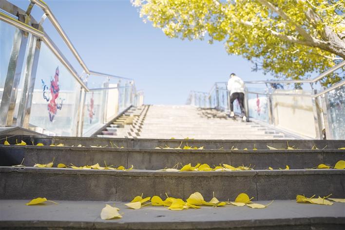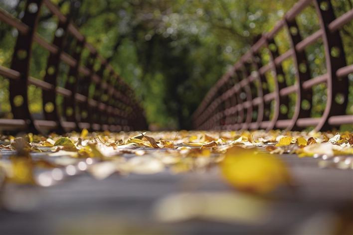 陽(yáng)光溫暖地包裹著大地,穿過(guò)草木,穿過(guò)人群,在地上折射出好看的光影。樹(shù)木一排排整齊站立著,樹(shù)葉時(shí)不時(shí)隨風(fēng)飄落,落在地面,鋪?zhàn)饕坏亟鹕牡靥海腥俗哌^(guò),發(fā)出“沙沙”的聲響,伴著人們的說(shuō)笑聲,格外動(dòng)聽(tīng)美妙。