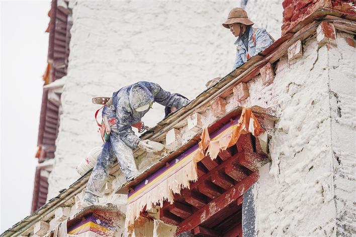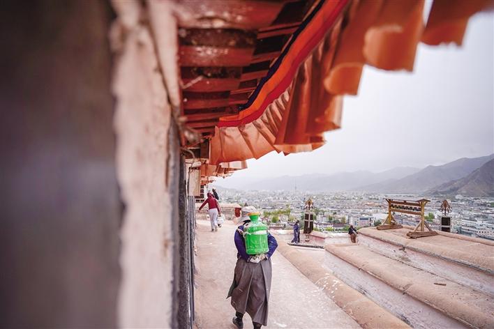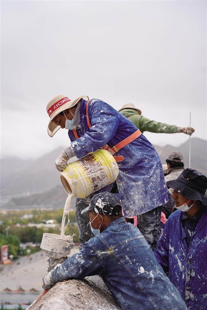 隨著布達(dá)拉宮“粉刷季”開始,很多市民群眾自發(fā)前往布達(dá)拉宮,加入“粉刷大軍”的隊伍。