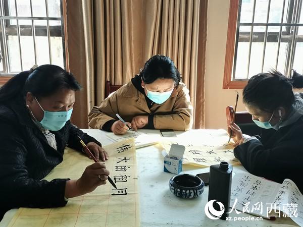 “村里有好多人喜歡書(shū)法,恰好城關(guān)區(qū)開(kāi)展新時(shí)代文明實(shí)踐站·一村一特色文化品牌村(社區(qū))創(chuàng)建活動(dòng),我們就想著往這個(gè)方面打造一下。”蔡村第一書(shū)記土登洛桑介紹。如今,每逢周六,村里會(huì)邀請(qǐng)拉薩市文聯(lián)、拉薩市書(shū)法家協(xié)會(huì)的書(shū)法名家,為熱愛(ài)書(shū)法的村民們傳授技藝。