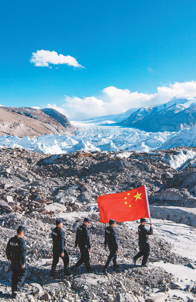 派出所的移民管理警察在崗布冰川附近巡邏。新華社記者 孫非攝