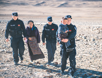 普瑪江塘邊境派出所的移民管理警察在巡邏途中。新華社記者 王沁鷗攝