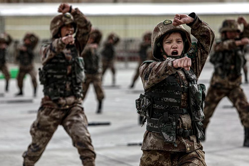 英姿颯爽的女兵。王述東攝