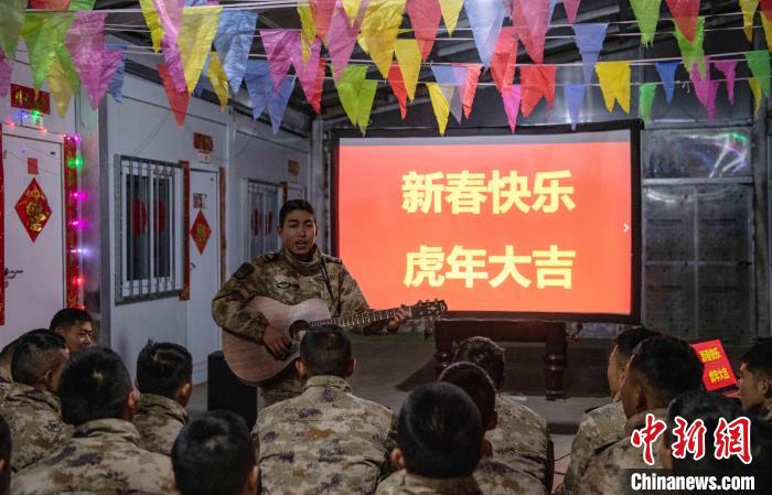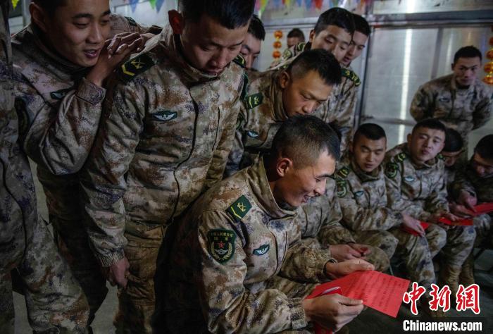 聯(lián)歡的尾聲指導(dǎo)員夏邦國拿著最后的彩袋走到臺前,把晚會推向高潮,“兄弟們,這還有一大袋紅包,里面裝著的可是最珍貴的祝?!?。官兵們用抽盲盒的形式拆開新年的“紅包”。中士趙路寬抽到一個最鼓的,打開是滿滿的糖果;下士吳兵拆開的是一個帶有小機(jī)關(guān)的新年賀卡;下士鄧云川拆到一封遠(yuǎn)方的匿名信,“雖不曾相見與相識,但知道是你們在默默堅守付出,守衛(wèi)著祖國的雪域邊防”。伴隨著他磕絆的普通話,連隊官兵漸漸安靜下來?!斑呹P(guān)有我,請祖國和人民放心”,簡易投影的大屏上開始播放著官兵們一年多來頂風(fēng)冒雪,戰(zhàn)天斗地的光影片段,在這大山里的多少的苦累酸甜,都已經(jīng)鐫刻在茫茫雪域。