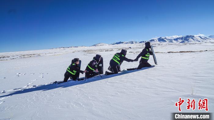 又經(jīng)過2個多小時的艱難跋涉,巡邏隊(duì)終于抵達(dá)目的地點(diǎn)位??辈臁㈢P雪、描紅……一個環(huán)節(jié)也不能出錯,界碑就是生命,就是戍邊人的信仰。