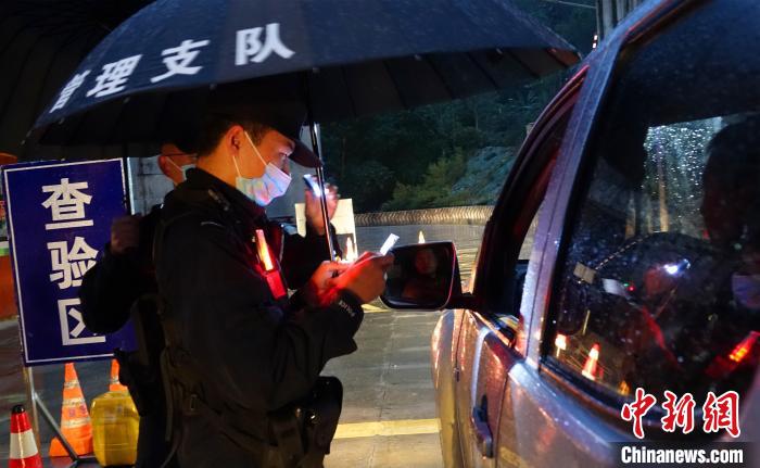 達(dá)國大橋檢查點(diǎn)民警正在檢查過往車輛。冉文娟 攝