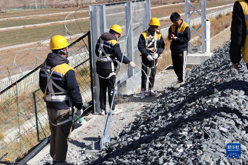 加查橋隧工區(qū)的工人檢查鋼軌周邊路況(1月26日攝)。新華社發(fā)(受訪者供圖)