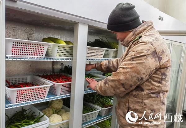 哨所里有了保鮮柜,新鮮蔬菜隨時供應(yīng)。人民網(wǎng) 李海霞攝