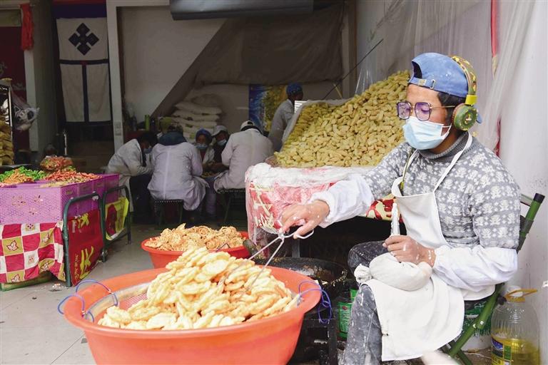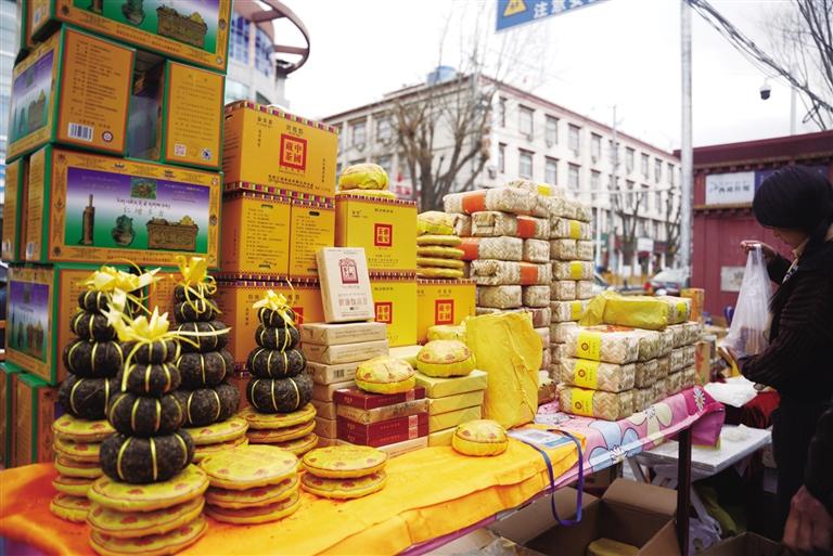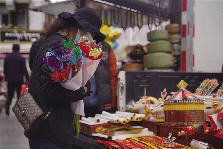 千門萬(wàn)戶曈曈日,總把新桃換舊符。隨著各民族交往交流交融,藏文對(duì)聯(lián)也逐漸成為藏歷新年年貨市場(chǎng)中不可缺少的“成員”,寄托了人們對(duì)來(lái)年美好生活的殷切期盼。走進(jìn)沖賽康市場(chǎng),記者看到很多攤位都擺放著各式各樣紅色藏式對(duì)聯(lián),內(nèi)容主要蘊(yùn)含平安、健康、長(zhǎng)壽等吉祥的寓意,不時(shí)還有市民前來(lái)詢價(jià)選購(gòu)。此外,每年藏歷新年前,不少書法家還會(huì)將滿載祝福的對(duì)聯(lián)寫好后送給市民,把濃濃的年味和對(duì)藏歷新年的祝福送到大家手中。