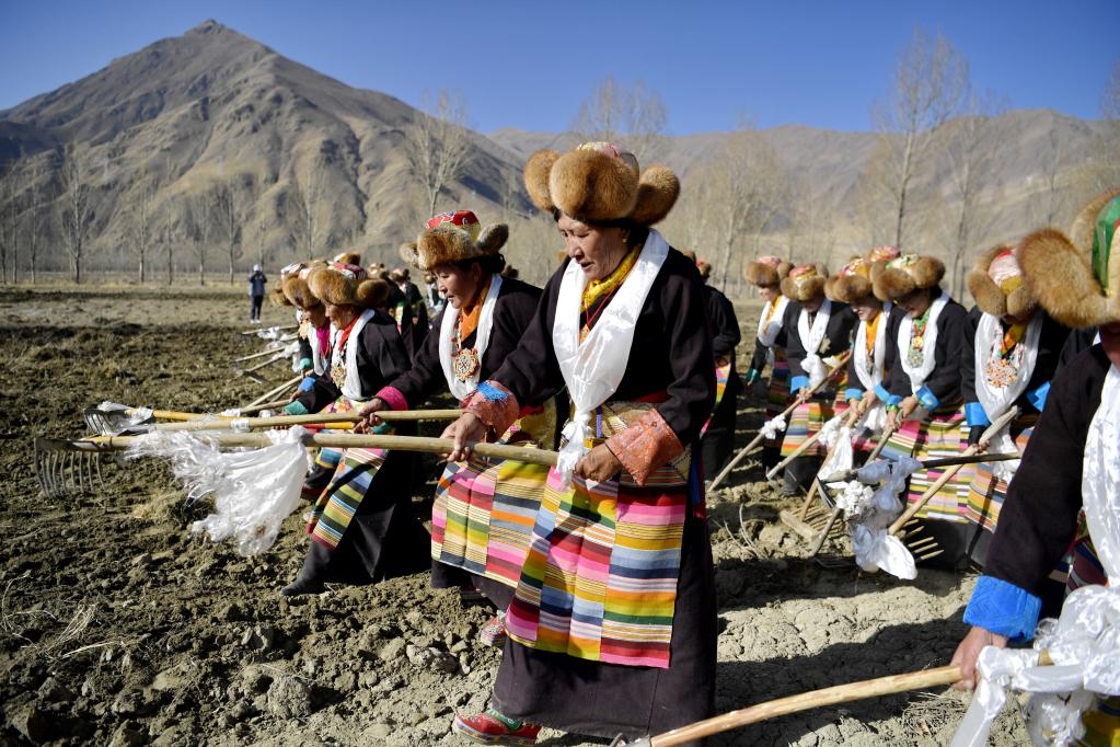 山南市乃東區(qū)門中崗社區(qū)春耕儀式現(xiàn)場(chǎng)(2022年3月16日攝)。新華社記者張汝鋒 攝