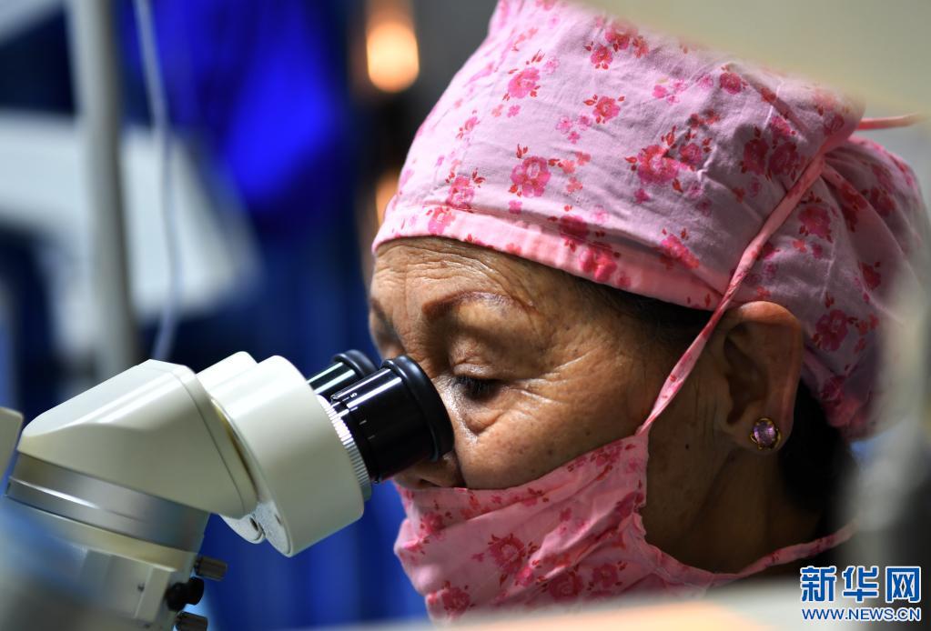 3月24日,藏族眼科專家卓嘎給患者實施復明手術。新華社記者 覺果 攝