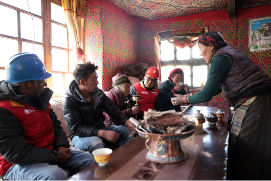 帳篷里大家圍坐在一起,喝著熱氣騰騰的酥油茶,熱情的讓卓不停地向服務(wù)隊(duì)隊(duì)員獻(xiàn)上脆脆的風(fēng)干肉,有說有笑。讓卓85歲的老奶奶瑪姆也湊起熱鬧聊家常,即使聽力有些下降,但聊到用電給生活帶來的改變時(shí),老奶奶笑著用流利的藏語說“黨的政策好??!”