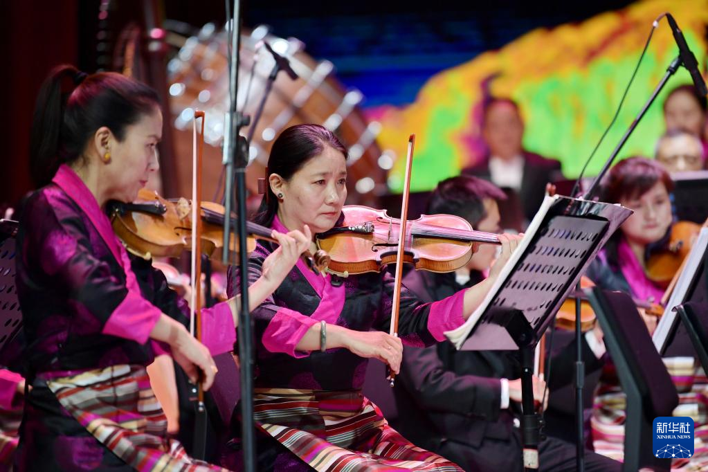 交響樂(lè)《古格幻想》在藏戲藝術(shù)中心演出(4月3日攝)。新華社記者 張汝鋒 攝