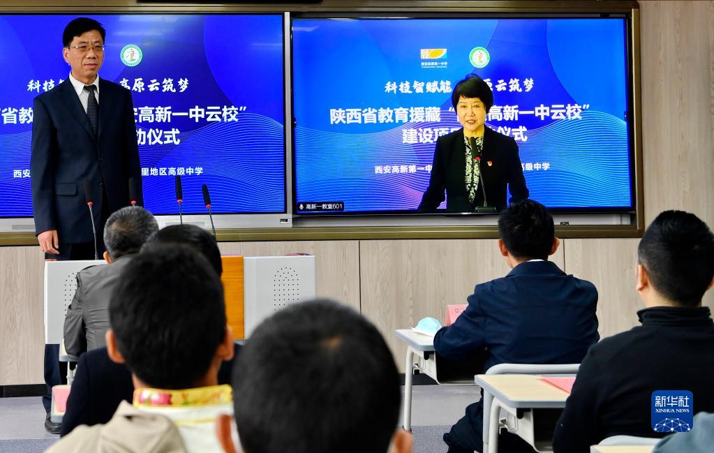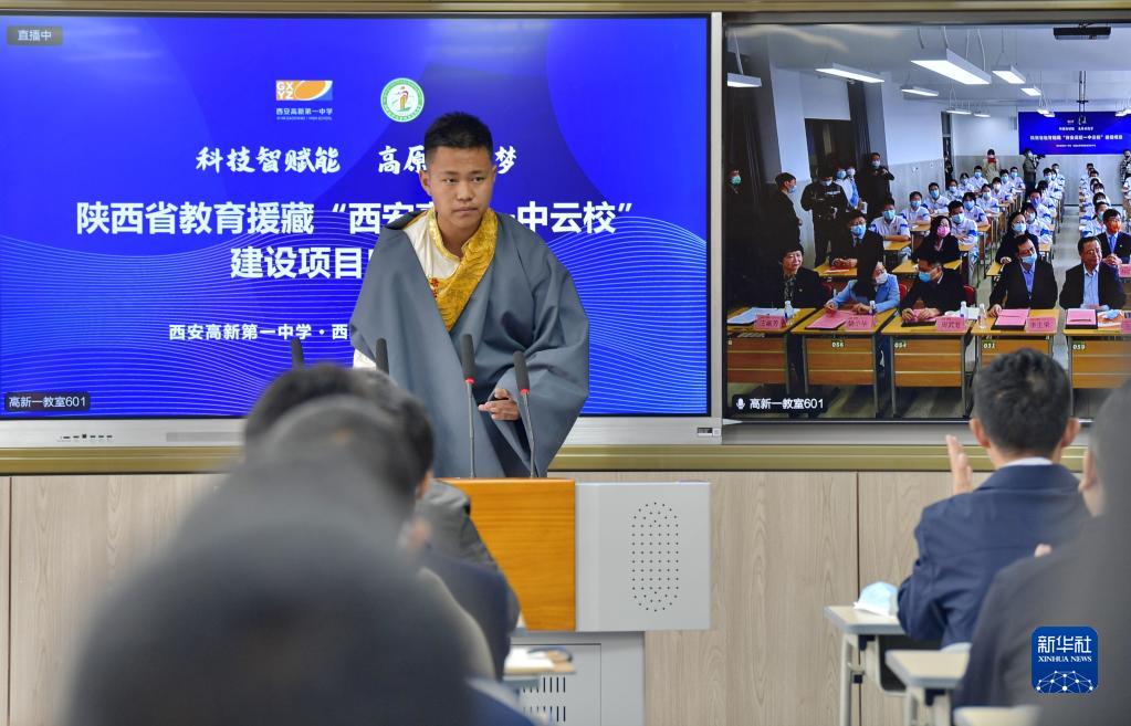 當(dāng)日,陜西省教育援藏“云校”建設(shè)項目正式啟動。陜西省西安高新第一中學(xué)和西藏拉薩阿里地區(qū)高級中學(xué)結(jié)成“對子”,借助5G網(wǎng)絡(luò)開展教學(xué)教研互動,助力提升教育水平。