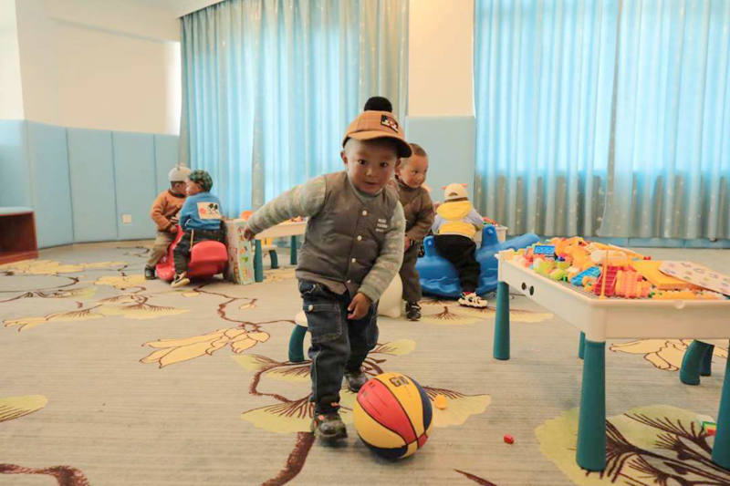 孩子們?cè)谒魃w村新時(shí)代文明實(shí)踐站里嬉戲玩耍。上海援藏聯(lián)絡(luò)組供圖