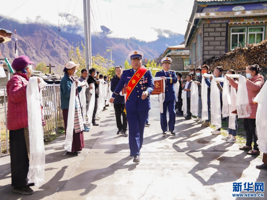 一人立功,全家光榮。近日,西藏林芝市森林消防支隊來到朗縣洞嘎鎮(zhèn)聶村,為榮立三等功的消防員洛桑頓珠一家送去立功喜報,并向他們表示祝賀。這份喜報如同一封無聲的家書,寫滿了消防救援人員的付出與堅守,讓鄉(xiāng)里鄉(xiāng)親共同感受這份榮耀。
