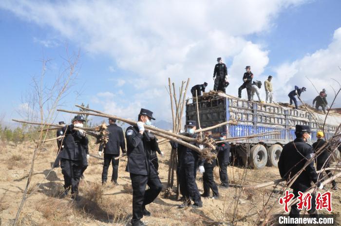 圖為西藏邊檢總站輪訓(xùn)大隊民警植樹活動現(xiàn)場 。西藏邊檢總站輪訓(xùn)大隊供圖