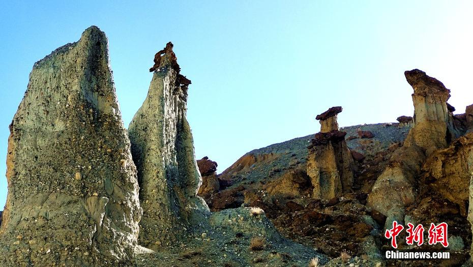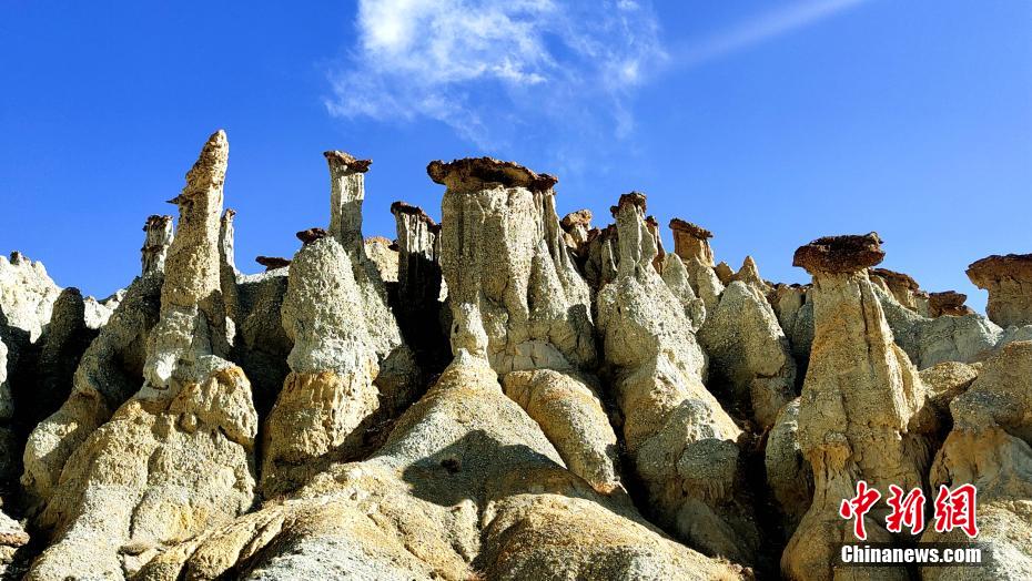 霞義溝位于西藏阿里地區(qū)札達縣香孜鄉(xiāng)境內(nèi),總長約5公里,左右分布數(shù)十個小溝。4月23日記者看到,由于長久以來的風化,使這里的土林地貌呈現(xiàn)上寬下窄的“蘑菇”奇觀,而形如人、魚、龜、旱獺、青蛙、飛鳥等的土林地貌更是惟妙惟肖。據(jù)稱,這里的土林底部主要為沙礫和黃土,頂部為含鐵量較高的礦層,在春日的陽光下,錯落有致,色彩斑斕。