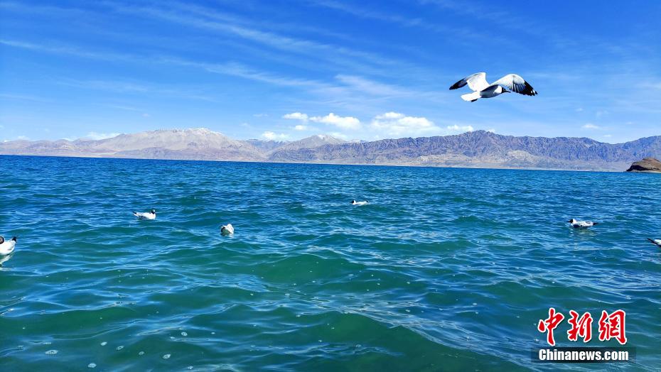 連日來(lái),班公湖晴空萬(wàn)里,在藍(lán)寶石般的湖面上,小白鳥(niǎo)自由游弋。貢桑拉姆 大象 嘎瑪次仁 攝