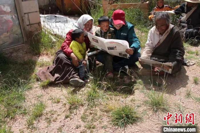 資料圖為益西卓嘎與雙湖縣牧民一起讀報(bào)。受訪者供圖