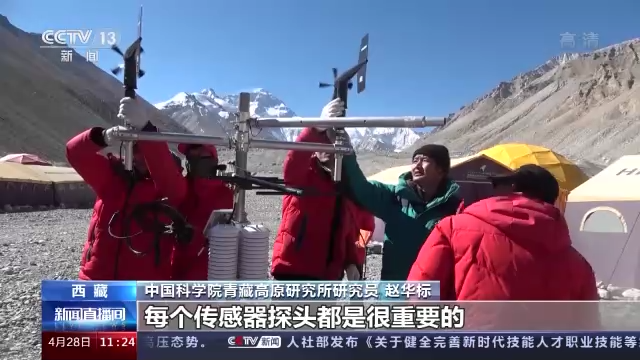 此次珠峰科考的一個重要任務,是從海拔5200米到8800米搭建8個氣象站,其中4個在海拔7000米以上,它們的海拔分別在7028米、7790米、8300米和8800米。