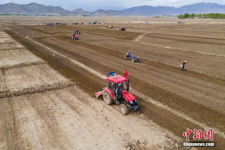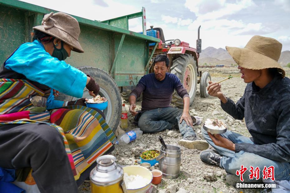 勞動節(jié)期間,海拔3800多米的日喀則田間一派繁忙景象。 江飛波 攝