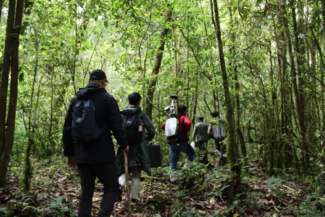 圖為測量團(tuán)隊(duì)進(jìn)入森林腹地進(jìn)行實(shí)地測量。(受訪者供圖)