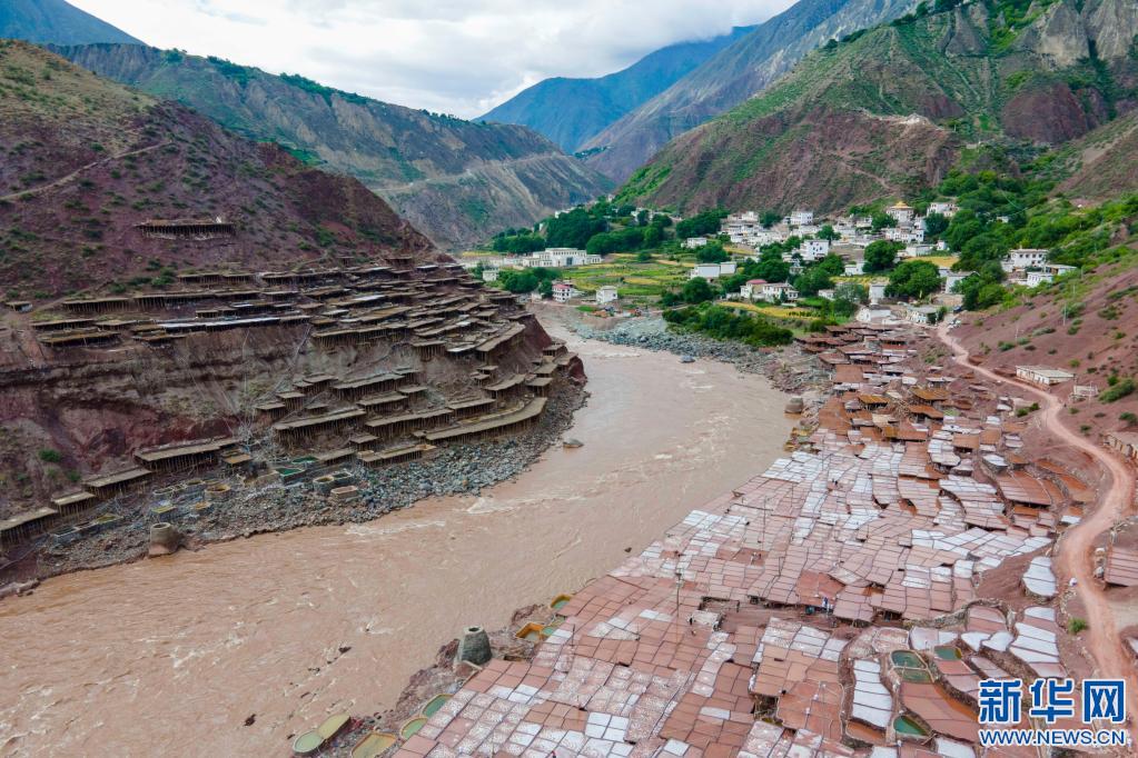 這是在西藏昌都市芒康縣納西民族鄉(xiāng)加達村拍攝的古鹽田(5月26日攝,無人機照片)。新華社記者 周荻瀟 攝