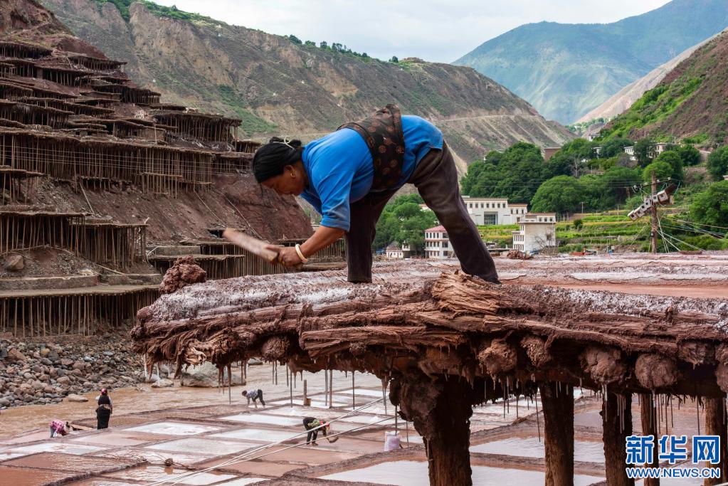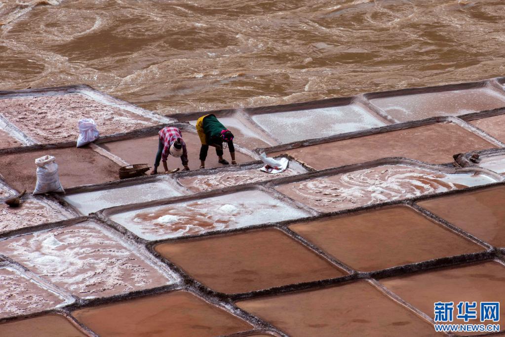 加達村村民在古鹽田里勞作(5月26日攝)。新華社記者 陳尚才 攝
