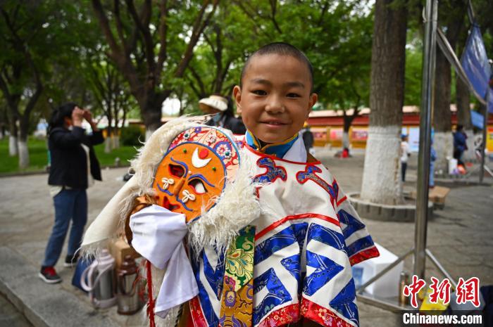 現(xiàn)場,藏戲、諧欽、堆諧、鷹笛吹奏等非遺歌舞展示吸引了眾多市民和游客前來觀看?;顒?dòng)中,白瑪多吉是藏戲演出中的小演員。他是城關(guān)區(qū)第二小學(xué)學(xué)生,從一年級到目前已經(jīng)學(xué)習(xí)了五年藏戲,這是他表演活動(dòng)中規(guī)模最大的一次。他說:“開始是父母讓我去學(xué)習(xí),現(xiàn)在已經(jīng)成為我自己的興趣愛好了,而且這樣的表演能夠讓我更有成就感,也變得更自信了?!?/p>