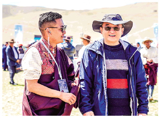 2021年7月,王軍強(qiáng)(右)在賽馬節(jié)上與索朗倫布談話。